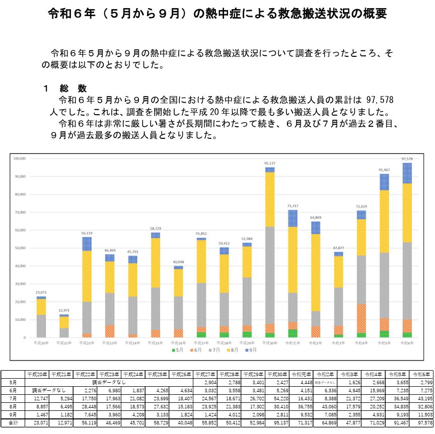 熱中症で救急搬送される高齢者は、毎年後を絶たない深刻な状況です。