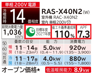 省エネ性がが高い機種をお求めの場合は、RX(R)シリーズかAX(A)シリーズをご検討ください。