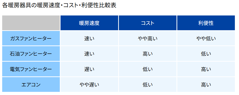 暖房費の高騰により、多くの高齢者世帯が「節約のため暖房を控える」という危険な選択を迫られています。エアコンと電気ファンヒーターのコストは、ガスファンヒーターと比べて40%程度安いという調査もあり、エアコン暖房は他の暖房手段と比較して効率が良く、厳しい冬を乗り切る選択肢として注目されています。