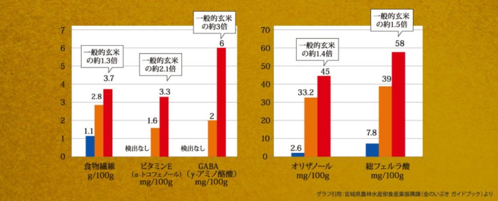 「金のいぶき」は、胚芽部分が通常玄米の約3倍の大きさがあります。