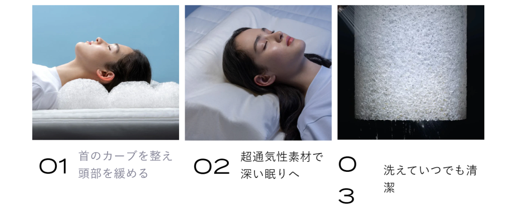 首と頭を一体化して支える独自の構造なので、寝ている間に整体のようなケアをしてくれるんです。