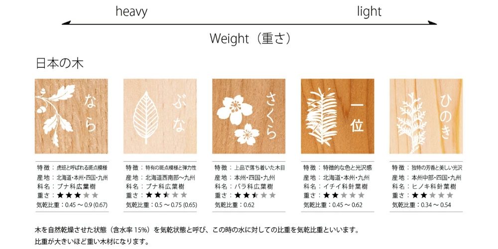 樹種ごとの違い(国産材)